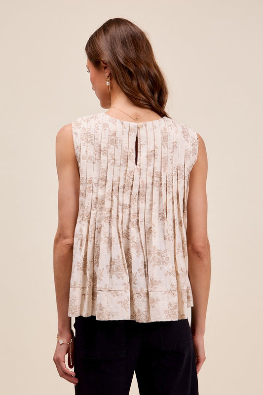 Floral Tie-Front Pleated Top