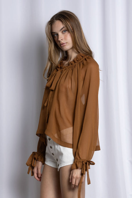 Sheer Ruffle Tie Front Blouse